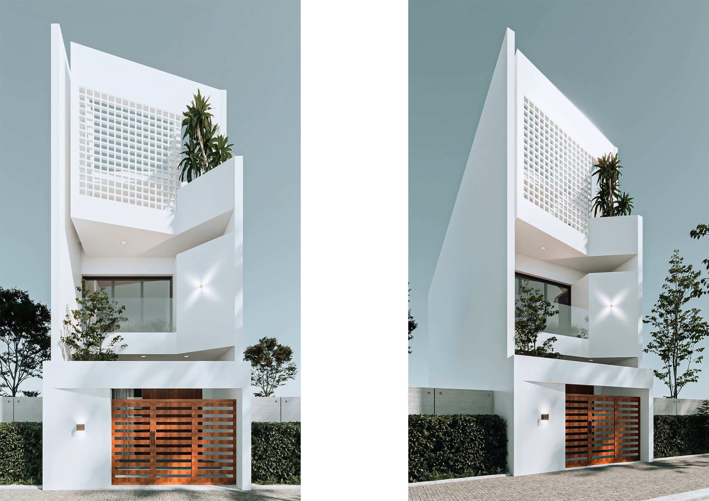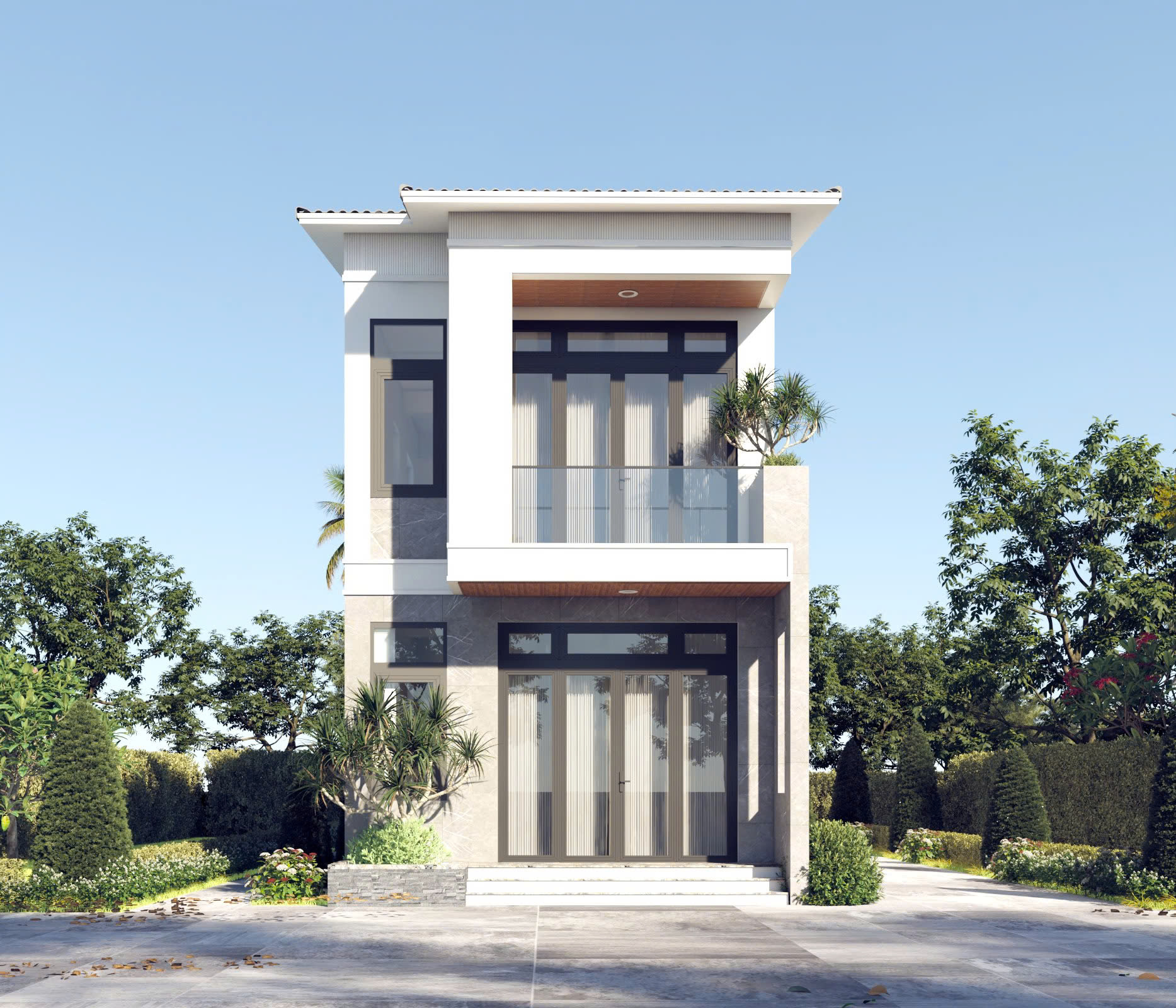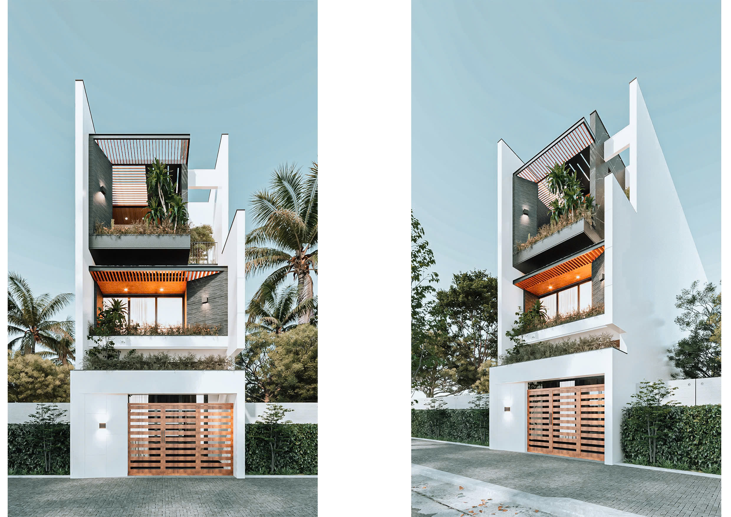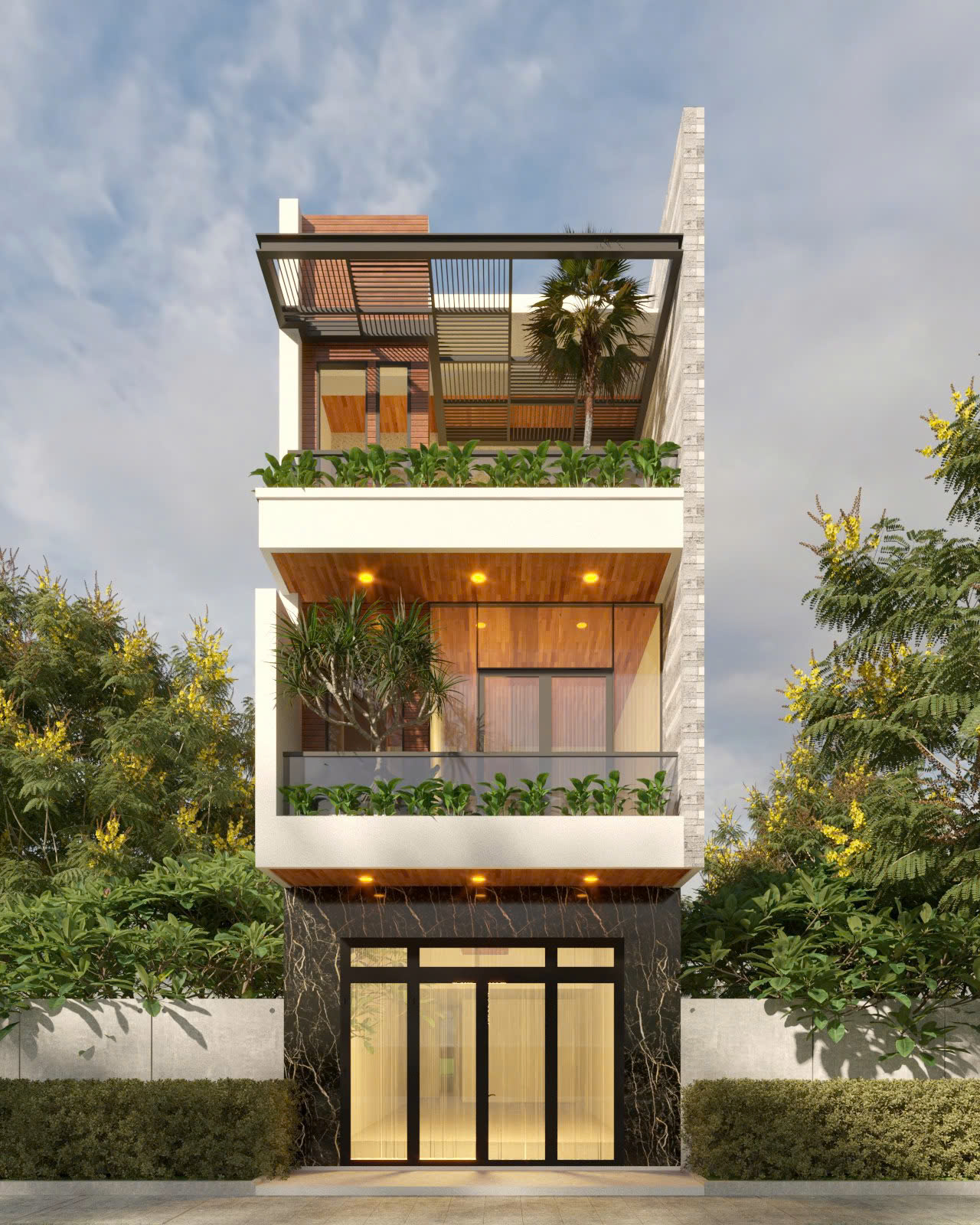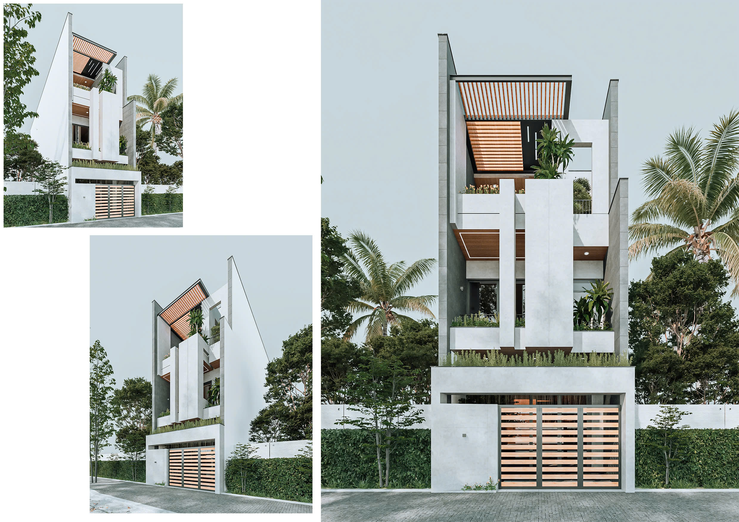 NHÀ PHỐ 3 TẦNG Kiến trúc thẳng đứng – Nhấn mạnh chiều cao & khoảng xanh