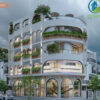• Các tầng trên: bố trí ban công với cây xanh, lan can nghệ thuật, cửa kính rộng để lấy sáng và tạo sự thoáng đãng.
