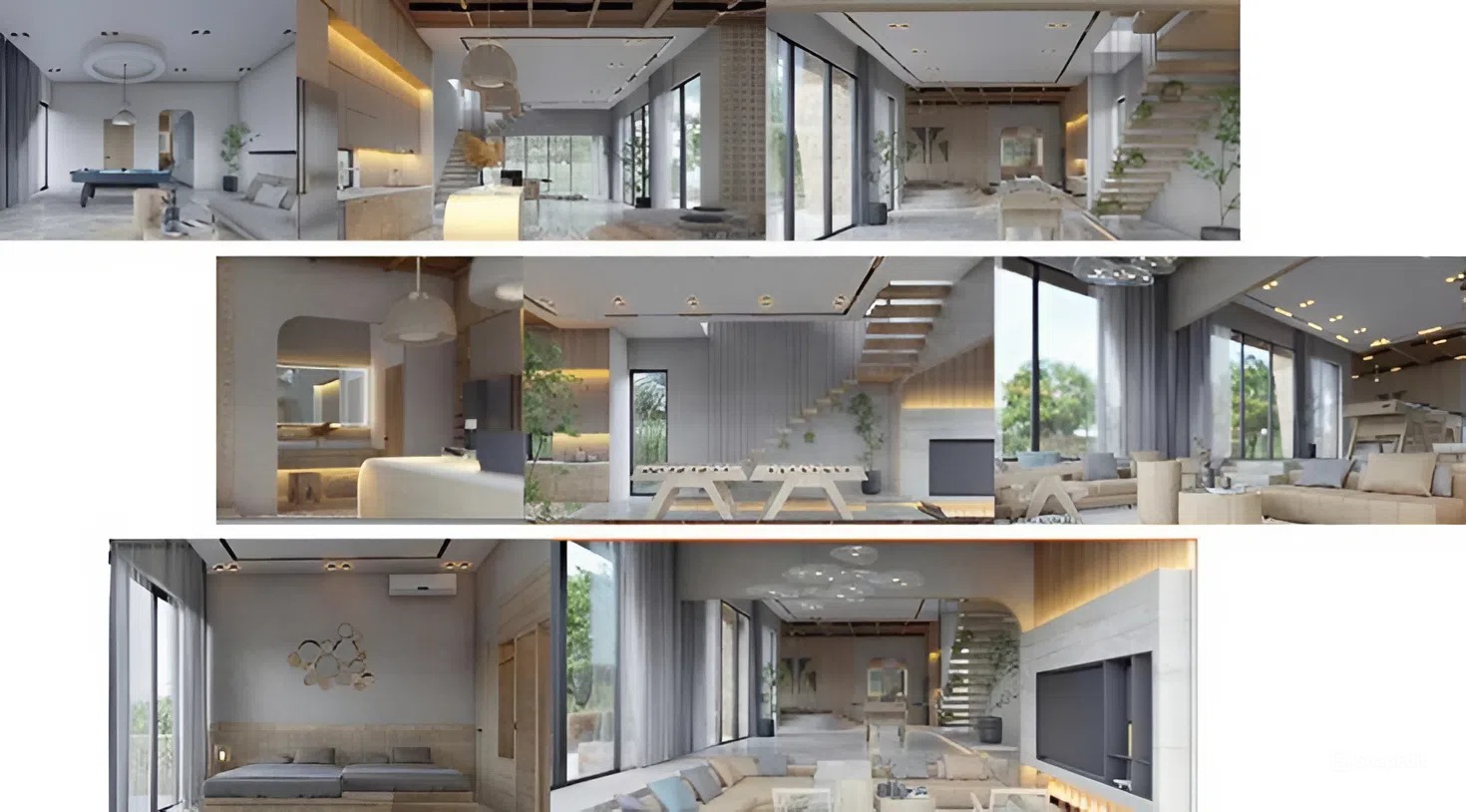 Không gian cầu thang và thông tầng đóng vai trò điểm nhấn kiến trúc, tạo chiều sâu và sự sang trọng cho tổng thể. Vật liệu cao cấp kết hợp ánh sáng gián tiếp mang đến cảm giác hiện đại, tinh tế nhưng vẫn ấm cúng, đáp ứng trọn vẹn nhu cầu sống đẳng cấp của gia chủ.