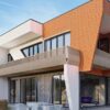 • Đường nét kiến trúc: Sử dụng hình khối vuông vức, lam dọc – ngang và mảng kính lớn tạo vẻ hiện đại, tinh tế.