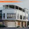 - Tầng trệt cảnh quan: cổng kết hợp kim loại và bê tông cùng cây nhiệt đới tạo điểm nhấn sang trọng.