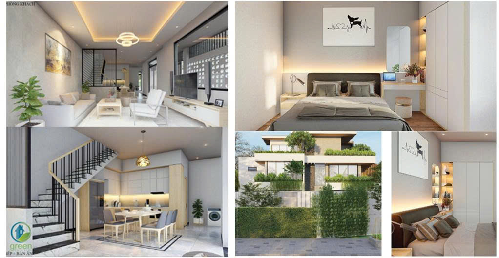 - Không gian đa năng: Bên trong có thể bố trí phòng khách mở, phòng ngủ riêng tư, kết nối với ban công xanh.