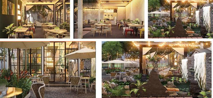 - Điểm nhấn cảnh quan: Cây xanh, ánh sáng và vật liệu tự nhiên được dùng làm yếu tố dẫn dắt thị giác, tạo cảm giác thư giãn và gần gũi.