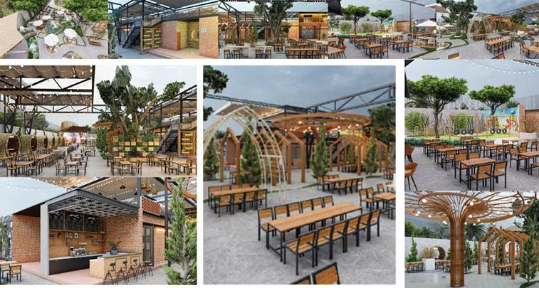 - Tạo điểm nhấn bằng tiểu cảnh nghệ thuật: Cổng chào, lối đi, mái vòm và khu vực check-in được thiết kế độc đáo để thu hút và tạo trải nghiệm thị giác.